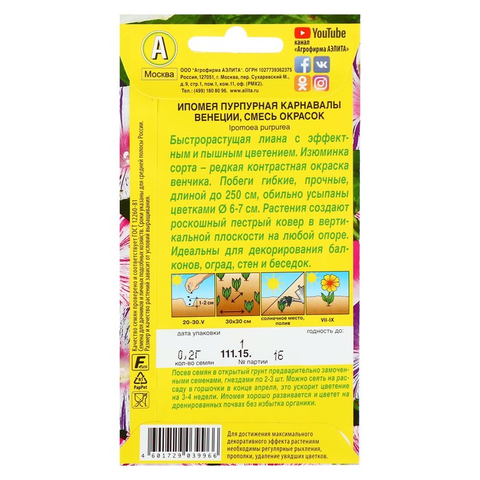 Как сажать. Предварительно замоченные семена сеют в открытый грунт в конце мая гнёздами по 2–3 шт. Всходы появляются на 5–7 день. Цветёт с середины лета до заморозков. Можно сеять на рассаду в горшочки в конце апреля, это приблизит цветение на 3–4 недели.