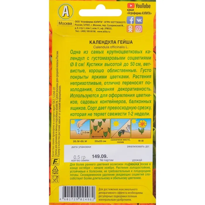 Календула «Гейша» — растение с оранжевыми шапками, здоровой и пышной листвой. Используется для украшения цветников, контейнеров, балконных ящиков и для срезки.