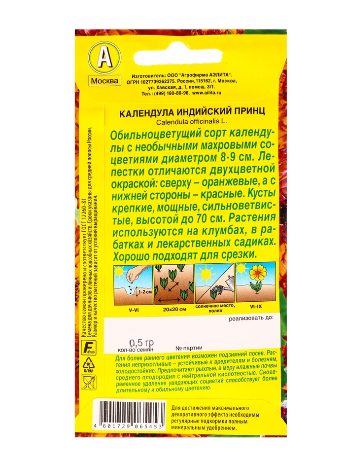 Семена цветов Календула Индийский принц махровая , Ц/П,0,5 г — Характеристики