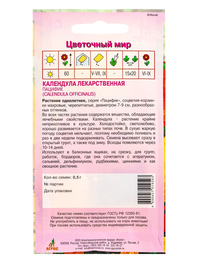 Семена цветов Календула «Пацифик», 0.5 г, «Агрос» — Характеристики