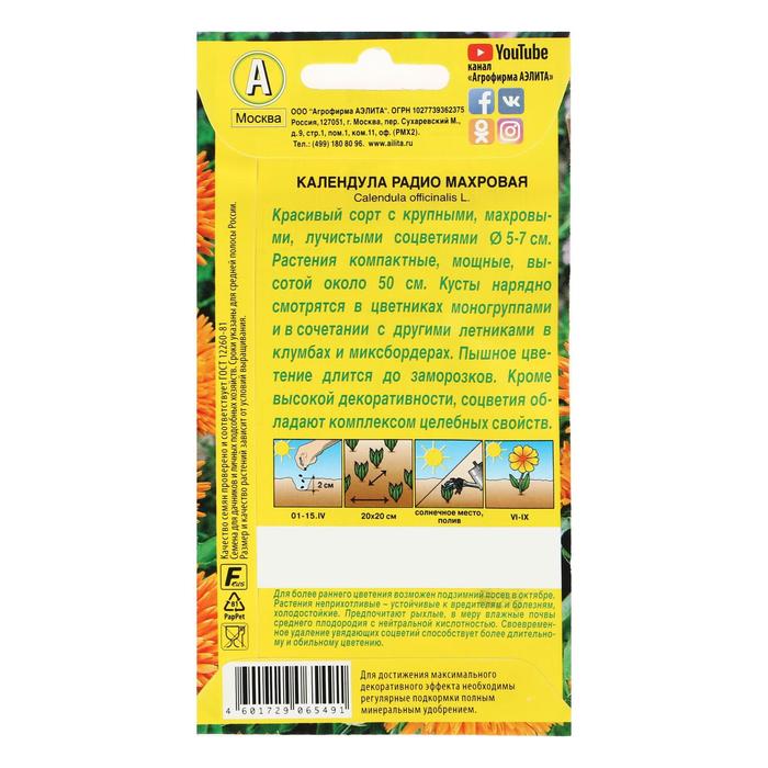 Крупные полушаровидные махровые соцветия календулы Радио имеют оригинальную лучистую форму: яркие желто-оранжевые язычковые цветки закручены в трубочки и образуют своеобразные “антенны”. Компактные кустики покрыты светло-зелеными листьями. Календула неприхотлива, отличается обильным и длительным цветением, великолепно подходит для посадки в группах, рабатках, хорошо смотрится в балконных ящиках.