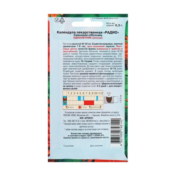 Растение высотой 40-50 см. Соцветия махровые, крупные (диаметром 7-8 см), ярко-оранжевой окраски. Язычковые цветки лучистой формы (свернутые в трубочку и заострённые). Цветение обильное, начинается через 45-55 дней от посева. Растение сравнительно неприхотливое, светолюбивое, холодостойкое (переносит заморозки до –5°С), незасухоустойчивое, легко размножается самосевом. Всходы появляются через 10-14 дней. Почвы предпочитает дренированные, известкованные, среднего плодородия, заправленные с осени фосфором. До массового цве-тения подкармливают комплексным удобрением (с интервалом 10-14 дней). Отцветшие соцветия удаляют. В сухую погоду необходим полив. Растение целиком является фитонцидным (отпугивающим нематод и других вредителей), для чего его измельчают во время цветения и перелопачивают с заражённой почвой.