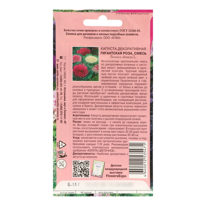 Семена цветов Капуста декоративная "Гигантская роза", смесь,набор 5 шт — Характеристики