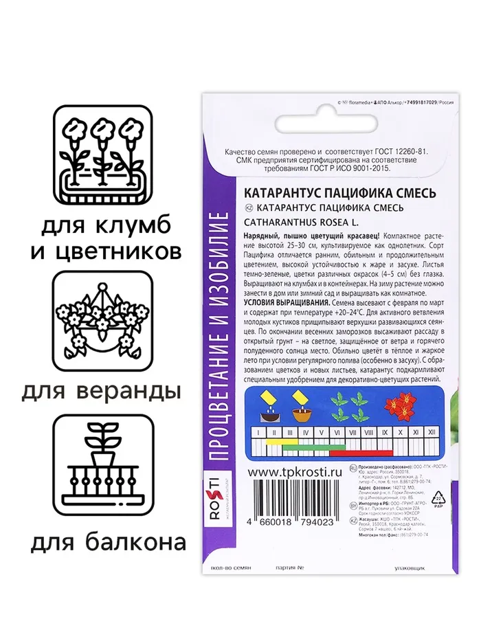 Семена цветов Катарантус "Пацифика смесь", 7 шт — Характеристики