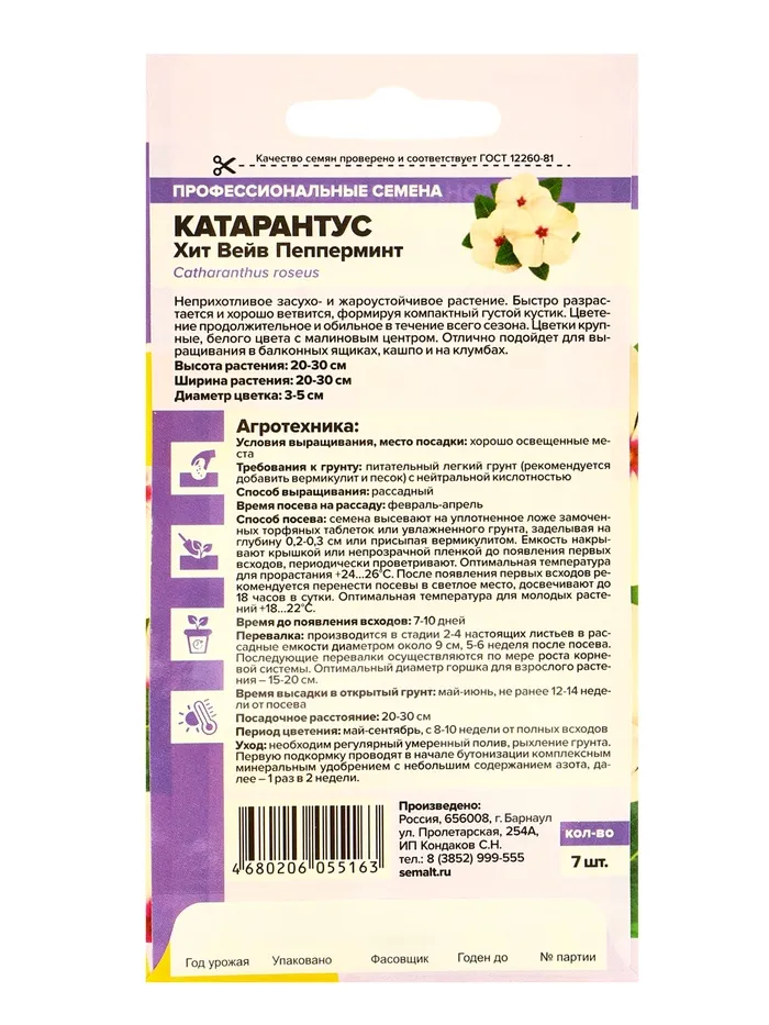 Неприхотливый низкорослый однолетник, в комнатных условиях можно выращивать как многолетник. Формирует компактные кустики высотой 25-30 см. Стебли прямостоячие с хорошим базальным ветвлением. Цветки яркие крупные, диаметром до 5 см. Идеально подходит для выращивания в условиях жаркого сухого климата. Используется как в качестве почвопокровного растения, так и для выращивания в подвесных кашпо, балконных ящиках и больших контейнерах. Земляную смесь для посева готовят из равных частей дерновой и листовой земли, перегноя, торфа и песка. Посевы на рассаду проводят с февраля по апрель. Семена высевают рядками, присыпая сверху небольшим слоем грунта (0,3 см). Посевы необходимо накрыть темной пленкой, поскольку для прорастания семенам требуется полная темнота. При температуре +25-28°С всходы появляются через 7-10 дней. После раскрытия росточков, требуется поддержание освещения до 18 часов в сутки.Температура воздуха в помещении не должна опускаться ниже +22-24°С. Нельзя допускать образования земляной корки после полива, для этого проводят аккуратное рыхление зубочисткой между рядками. Сеянцы пикируют в стадии 2-х настоящих листочков в отдельные емкости. В грунт рассаду высаживают, когда минует угроза заморозков. Посадочный интервал 20-30 см. Если растения высаживают в подвесные корзины, для обильного цветения необходима подкормка полным минеральным удобрением каждые 7-10 дней. Цветение с мая по октябрь.