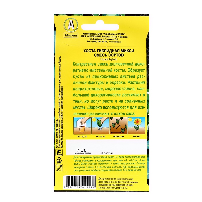 Семена цветов Хоста "Микси" смесь сортов, ц/п, 7 шт — Характеристики