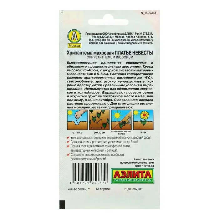 Завораживающая красота белоснежных цветков хризантемы – словно платье невесты, очаровывает и дарит ощущение легкости и безмятежного счастья. Компактные кусты порадуют вас обильным и продолжительным цветением до самых заморозков. Великолепно подходит для оформления клумб, миксбордеров, бордюров, солитеров. Срезанные хризантемы долго стоят в воде, наполняя воздух изысканным, чуть горьковатым ароматом.