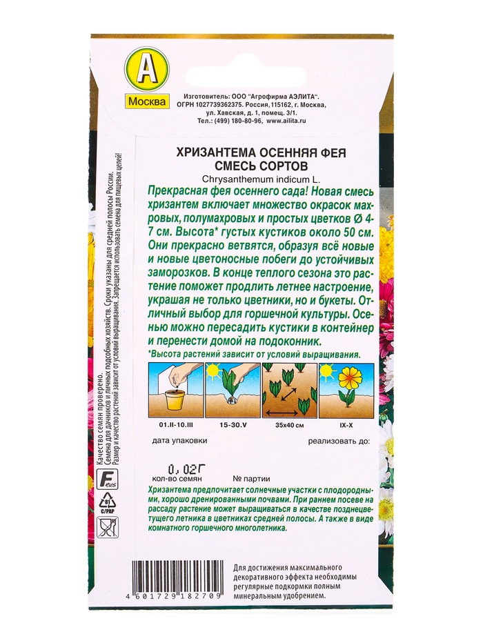 Семена цветов Хризантема Осенняя фея, смесь сортов Мн Золотая серия, Ц/П,0,02 г — Характеристики