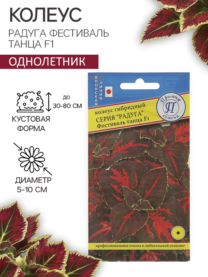 Однолетник. Высокорослый гибрид колеуса с большими, декоративными цветными листьями. Рекомендуется для групповых посадок или как фон для более низких цветов.