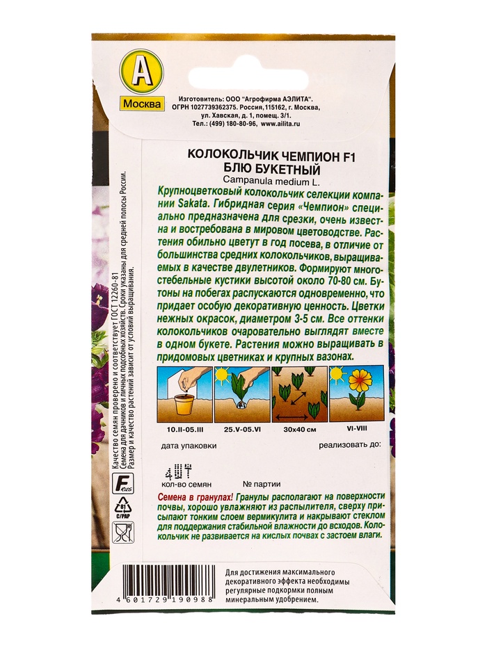 Семена цветов Колокольчик Чемпион F1 блю букетный (драже) С. Sakata , Ц/П,4 шт. — Характеристики