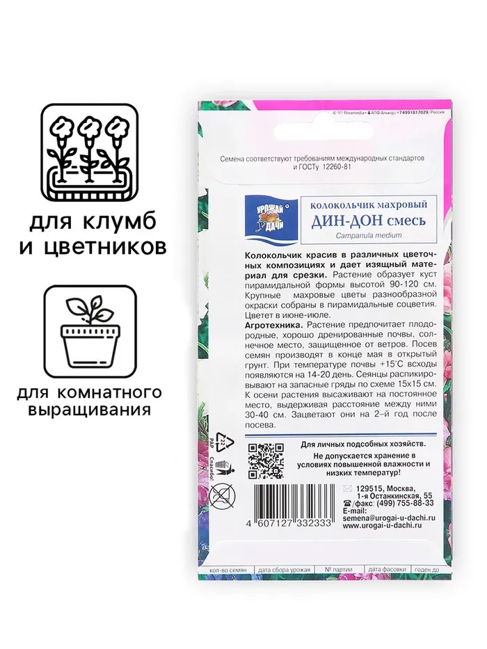 Колокольчик красив в различных цветочных композициях и дает изящный материал для срезки. Растение образует куст пирамидальной формы высотой 90-120 см. Крупные махровые цветы разнообразной окраски собраны в пирамидальные соцветия. Цветет в июне-июле.