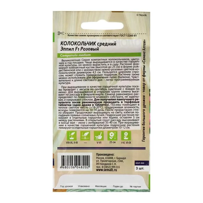 Семена цветов Колокольчик "Эппил", ц/п, розовый, F1, 3 шт. — Характеристики