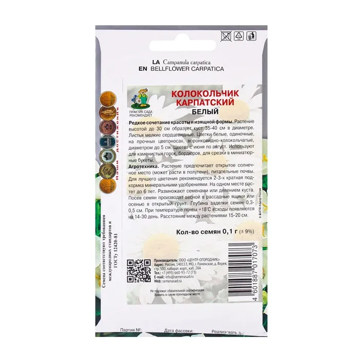 Семена цветов Колокольчик карпатский Белый, 0,1гр — Характеристики
