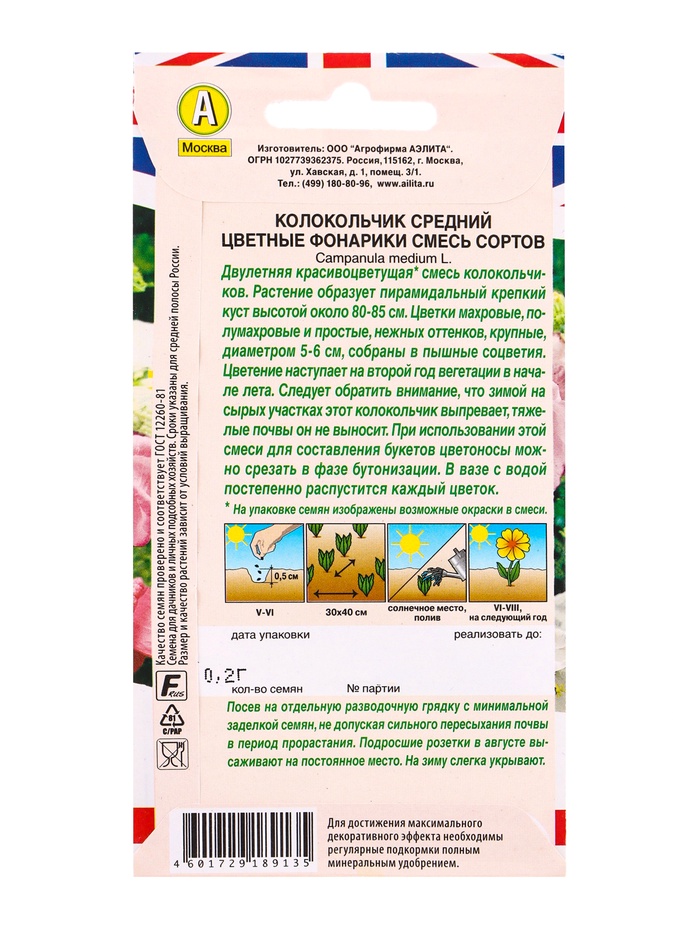 Семена цветов Колокольчик Цветные фонарики, смесь сортов Дв Британская коллекция цветов, Ц/П,0,2 г 1 — Характеристики
