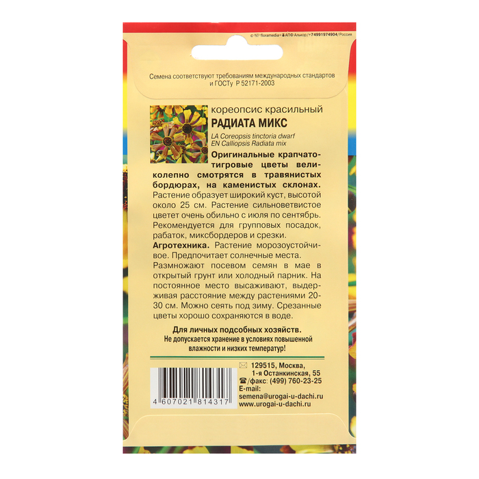 Семена цветов Кореопсис "Радиата", микс, 0,1г — Характеристики