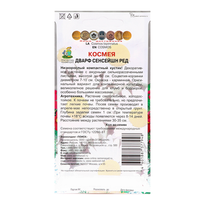 Семена цветов Космея "Дварф сенсейшн ред", 0,2гр. — Характеристики