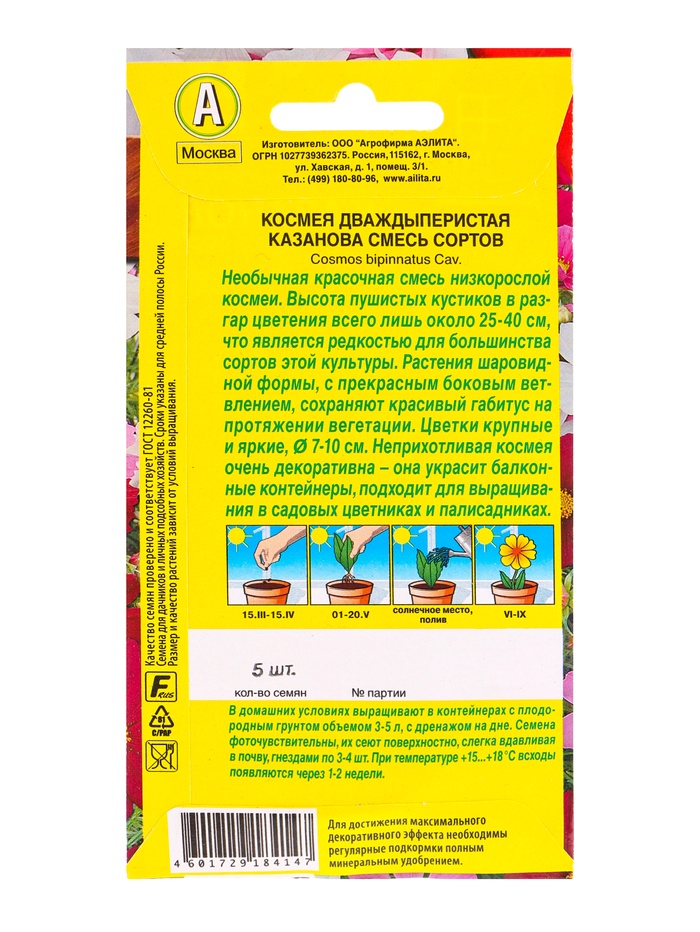 Семена цветов Космея Казанова, смесь сортов Цветущий балкон, Ц/П,5 шт. — Характеристики