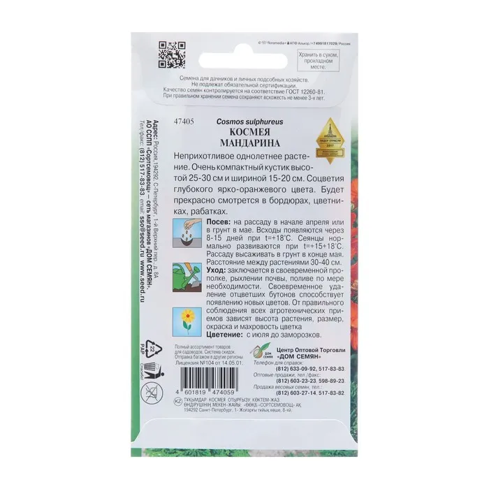 Семена цветов Космея "Мандарина", 10 шт — Характеристики