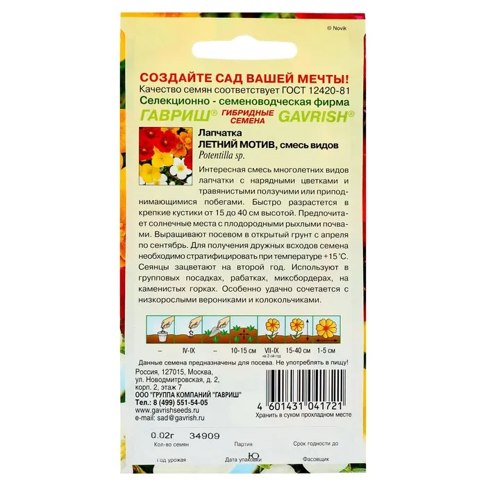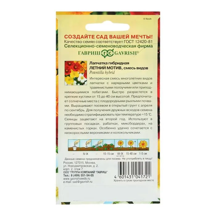 Семена цветов Лапчатка "Летний мотив", ц/п, 0,01 г — Характеристики