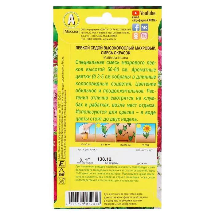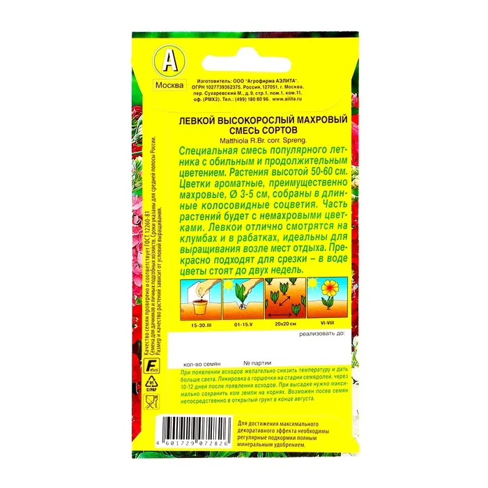 Семена сеют непосредственно в грунт рано весной. Всходы прореживают. Можно посеять на рассаду в начале апреля, это ускорит цветение на 2 недели. Чтобы левкой цвёл дольше, сейте семена в несколько сроков с интервалом в 3 недели.