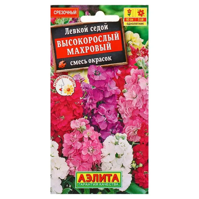 «Высокорослый» — смесь окрасок левкоя с высокими кустами и очень ароматными махровыми цветками. Широко используется на клумбах, в рабатках и цветниках, возле мест отдыха, подходит для выращивания в контейнерах. После срезки цветы стоят в воде до двух недель.