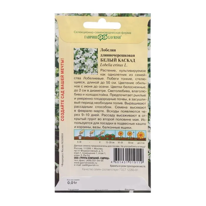 Растение, культивируемое как однолетник из семейства Лобелиевые. Побеги тонкие, стелющиеся, длиной до 50 см. Цветение обильное с июня до осени. Цветки белоснежные, до 2 см в диаметре. Светолюбива, влаголюбива и холодостойка. Предпочитает рыхлые и умеренно плодородные почвы, в засушливый период необходим полив. Выращивают рассадным способом. Семена высевают в феврале-марте. Всходы появляются через 9-10 дней. Рассаду высаживают в открытый грунт во второй половине мая. Используется для посадки в подвесные кашпо и корзины, вазы, балконные ящики.
