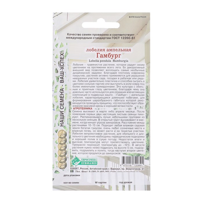 «Гамбург» -ампельная лобелия, характеризующаяся длинными побегами, для формирования шарообразного габитуса которой рекомендуется проводить прищипку, что поспособствует образованию красивой кроны и хорошей ветвистости.