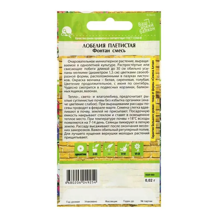Очаровательное миниатюрное растение, выращиваемое в однолетней культуре. Распростёртые или свисающие побеги, длинной до 30 см, обильно усыпаны мелкими (диаметром 1,5 см) цветками своеобразной формы, расположенными в пазухах листочков. Окраска венчика – белая, сиреневая, голубая. Цветение продолжительное, с июня по сентябрь. Чудесно смотрится в подвесных корзинах, балконных ящиках, вазонах. Тепло-, свето- и влаголюбива, предпочитает рыхлые суглинистые почвы без избытка органики (иначе цветение слабое).