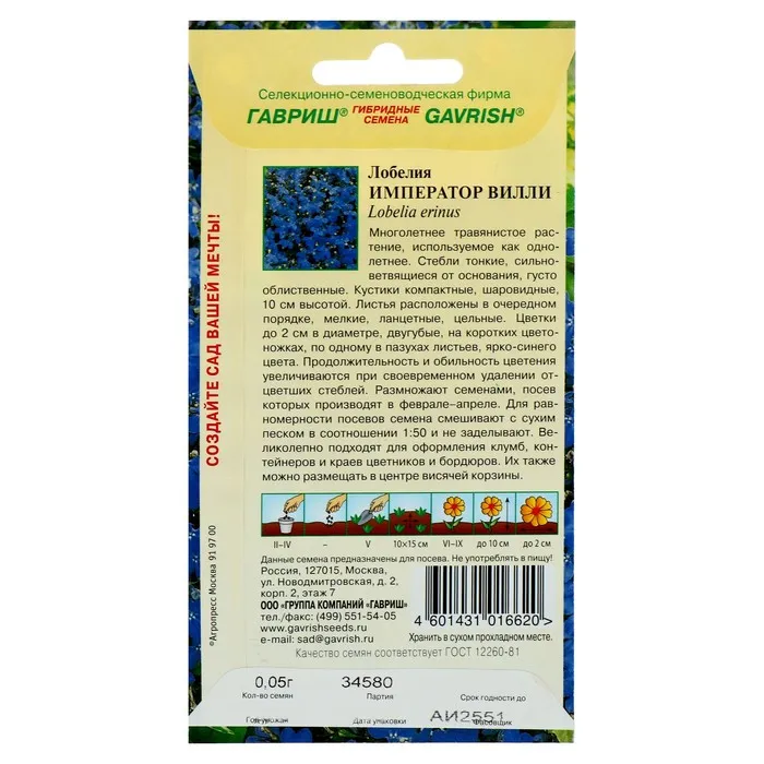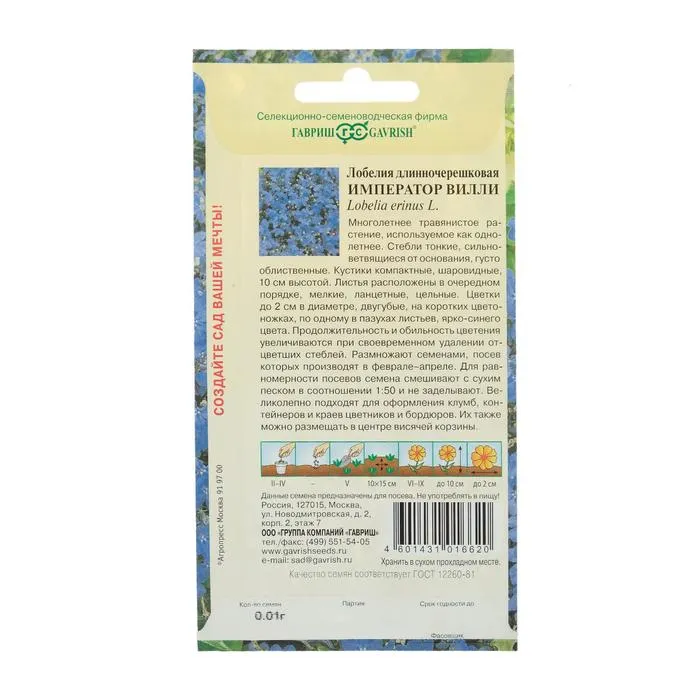 Многолетнее травянистое растение, используемое как однолетнее. Стебли тонкие, сильноветвящиеся от основания, густо облиственные. Кустики компактные, шаровидные, 10 см высотой. Листья расположены в очередном порядке, мелкие, ланцетные, цельные. Цветки до 2 см в диаметре, двугубые, на коротких цветоножках, по одному в пазухах листьев, ярко-синего цвета. Продолжительность и обильность цветения увеличиваются при своевременном удалении отцветших стеблей. Размножают семенами, посев которых производят в феврале - апреле. Для равномерности посевов семена смешивают с сухим песком в соотношении 1:50 и не заделывают. Великолепно подходят для оформления клумб, контейнеров и краев цветников и бордюров. Их также можно размещать в центре висячей корзины.