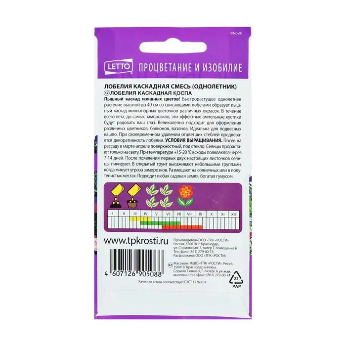 Семена цветов «Лобелия Каскадная смесь», однолетник, 0,1 г — светолюбивое, влаголюбивое растение, требует лёгких, нейтральных по кислотности почв с невысоким содержанием органики.