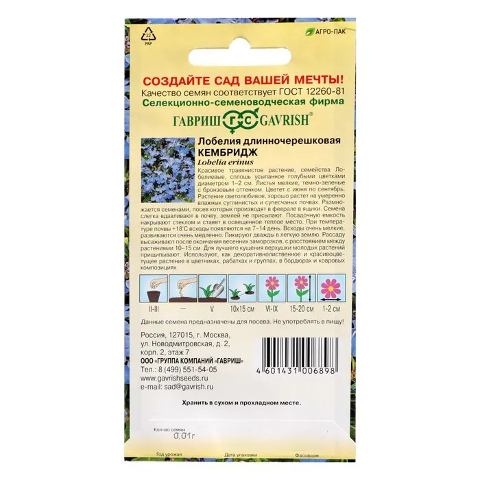 Красивое травянистое растение, семейства Лобелиевые, сплошь усыпанное голубыми цветками диаметром 1-2 см. Листья мелкие, темно-зеленые с бронзовым оттенком. Цветет с июня по сентябрь. Растение светолюбивое, хорошо растет на умеренно влажных суглинистых и супесчаных почвах. Размножается семенами, посев которых производят в феврале в ящики. Семена слегка вдавливают в почву, землей не присылают. Посадочную емкость накрывают стеклом и ставят в освещенное теплое место. При температуре почвы +18С всходы появляются на 7-14 день. Всходы очень мелкие, развиваются очень медленно. Пикируют дважды в легкую землю. Рассаду высаживают после окончания весенних заморозков, с расстоянием между растениями 10-15 см. Для лучшего кущения верхушки молодых растений прищипывают. Используют, как декоративно-лиственное и красивоцветущее растение в цветниках, рабатках и группах, в бордюрах и ковровых композициях.