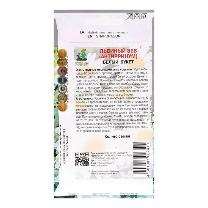 Семена цветов Львиный зев "Белый букет", 0,1гр. — Характеристики