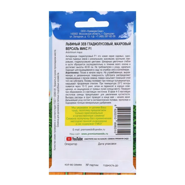 Антирринум гладиолусовый F1 - это новая серия садовых, однолетних львиных зевов с уникальными, красивыми, крупными, махровыми, гладиолусовыми цветками. Шикарные цветочные стебли в кусте образуются последовательно в течение всего сезона и достигают высоты 45-50 см. Не требователен к уходу, идеально подходит для выращивания в саду на клумбах или в контейнерах.