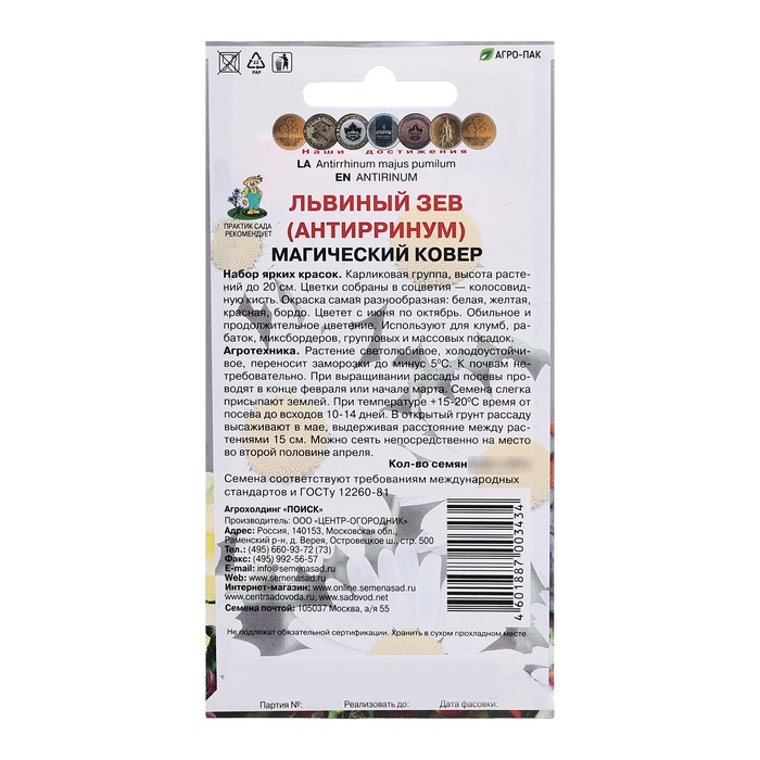 Семена цветов Львиный зев "Магический ковёр", 0,3гр. — Характеристики