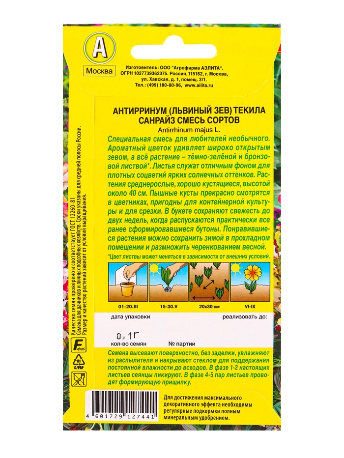 Семена цветов Львиный зев Текила санрайз, смесь окрасок , Ц/П,0,1 г — Характеристики