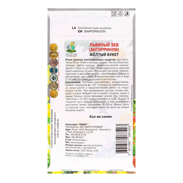Семена цветов Львиный зев "Жёлтый букет", 0,1гр. — Характеристики