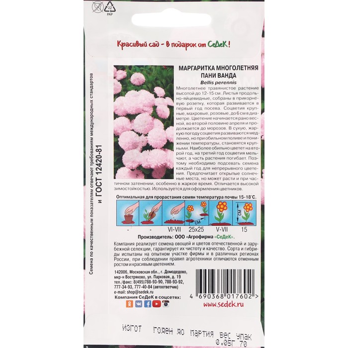 Семена цветов маргаритка «Пани Ванда», 0.05 г — Характеристики