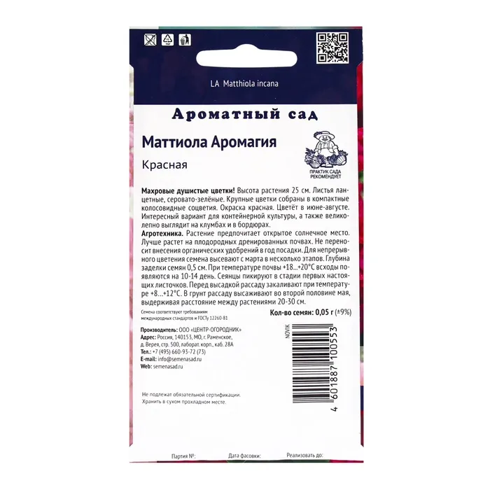 Семена цветов Маттиола Аромагия Красная, 0,05гр — Характеристики