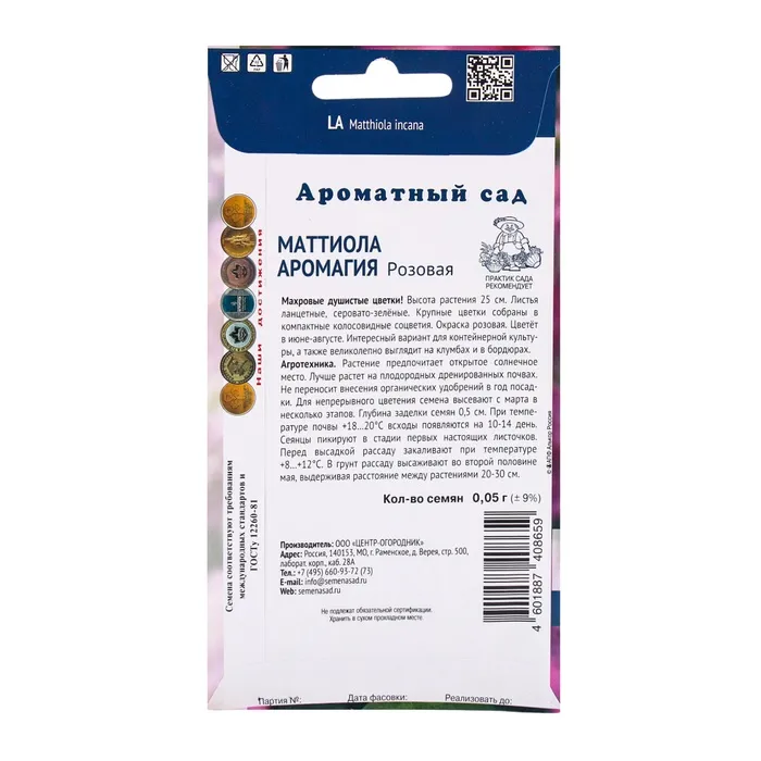 Семена цветов Маттиола Аромагия Розовая, 0,05гр — Характеристики