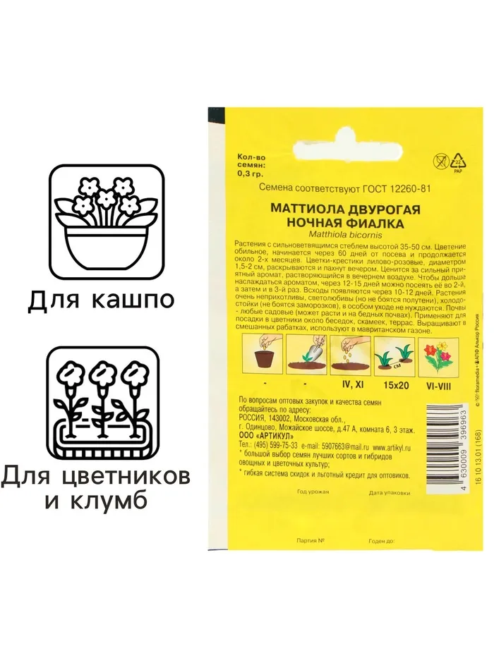 Растения с сильноветвящимся стеблем высотой 35-50 см. Цветение обильное, начинается через 60 дней от посева и продолжается около 2-х месяцев. Цветки-крестики лилово-розовые, диаметром 1,5-2 см, раскрываются и пахнут вечером. Ценится за сильный приятный аромат, растворяющийся в вечернем воздухе. Чтобы дольше наслаждаться ароматом, через 12-15 дней можно посеять её во 2-й, а затем и в 3-й раз. Всходы появляются через 10-12 дней. Растения очень неприхотливы, светолюбивы (но не боятся полутени), холодостойки (не боятся заморозков), в особом уходе не нуждаются. Почвы - любые садовые (может расти и на бедных почвах). Применяют для посадки в цветники около беседок, скамеек, террас. Выращивают в смешанных рабатках, используют в мавританском газоне.