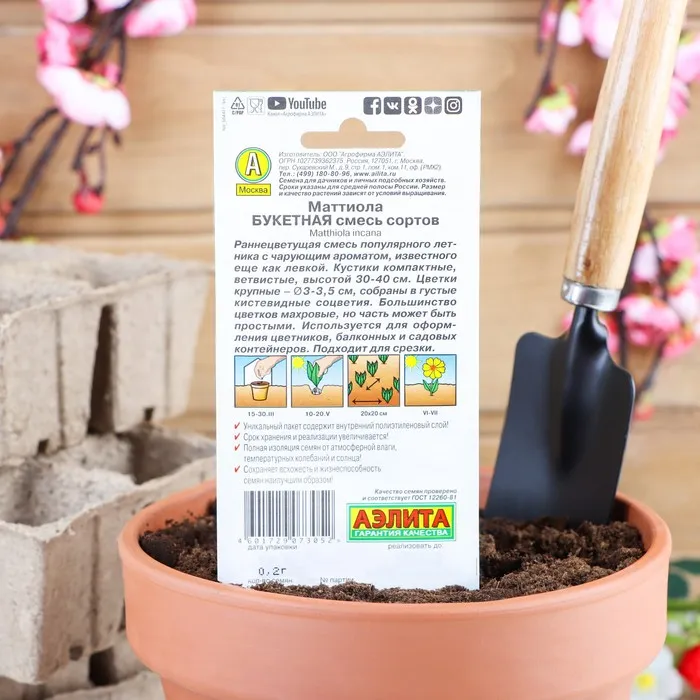 Семена цветов Маттиола Левкой "Букетная", смесь окрасок, О, 0,2 г — Характеристики