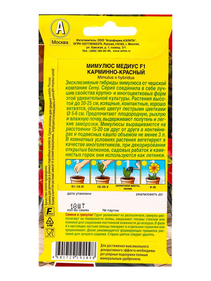 Семена цветов Мимулюс Медиус F1 карминно-красный (драже) С. Cerny Цветущий балкон, Ц/П,10 шт. 10945 — Характеристики