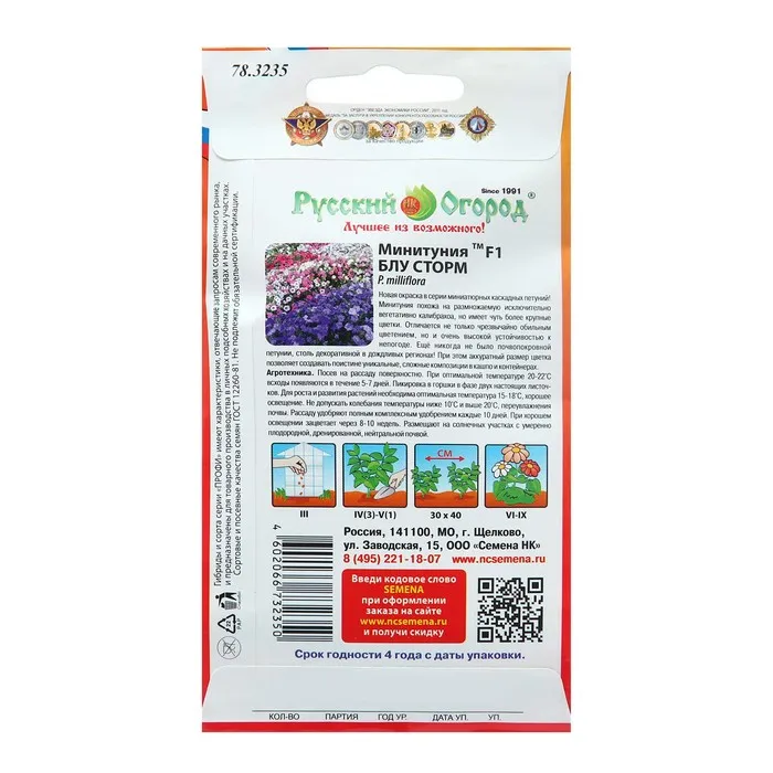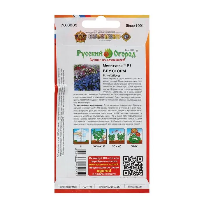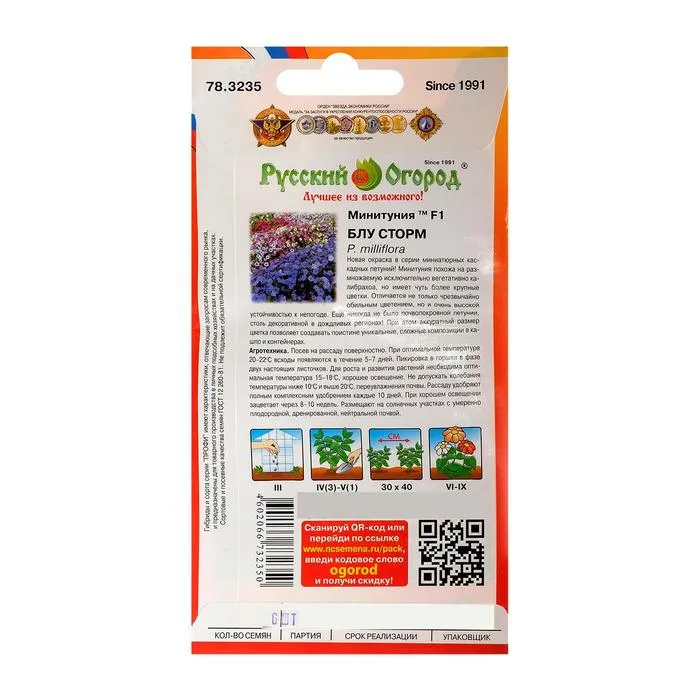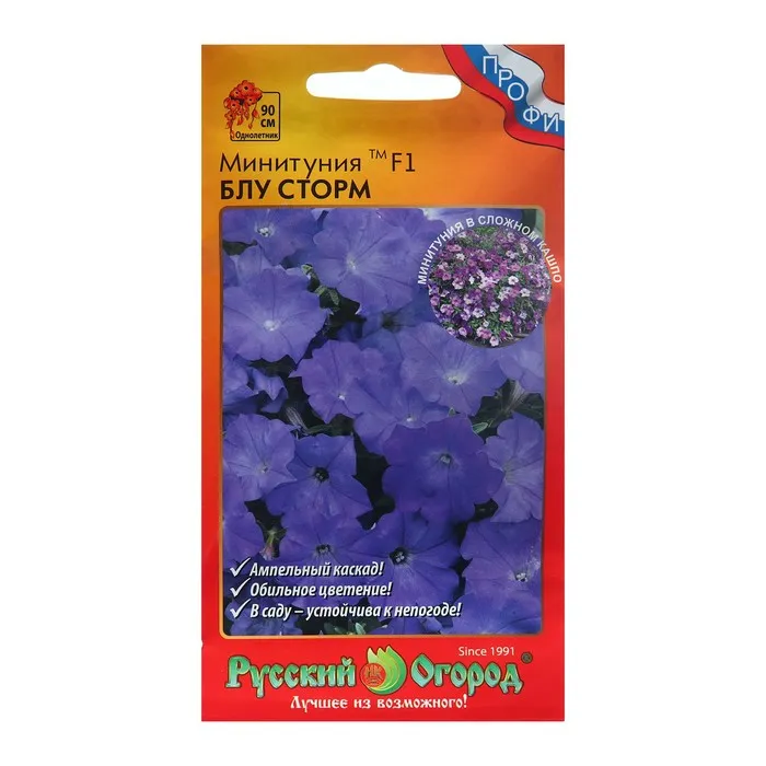 Семена цветов Минитуния "Блу Сторм", серия "Профи", F1, 6 шт — Характеристики
