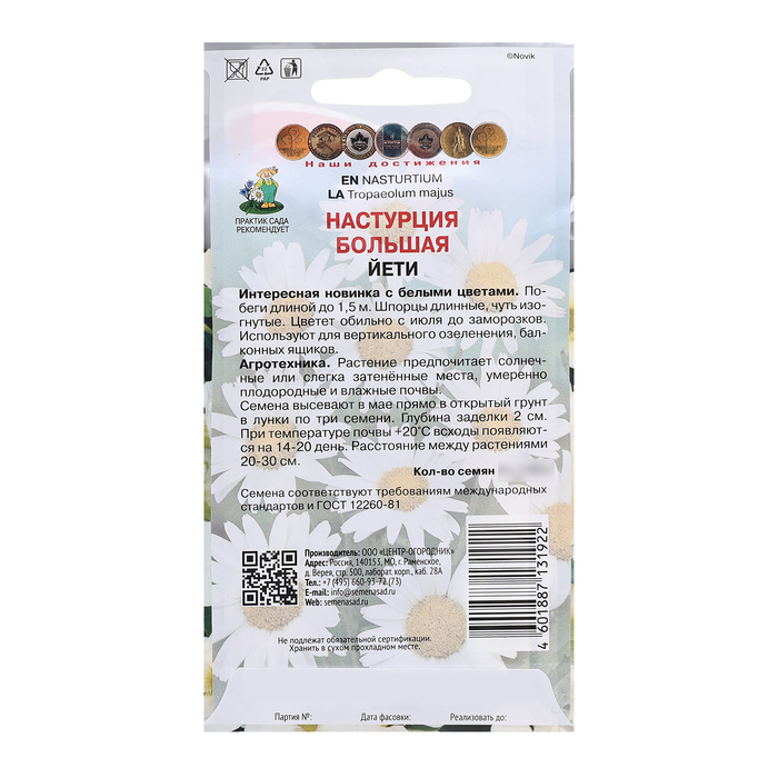 Семена цветов Настурция большая "Йети", 1гр. — Характеристики