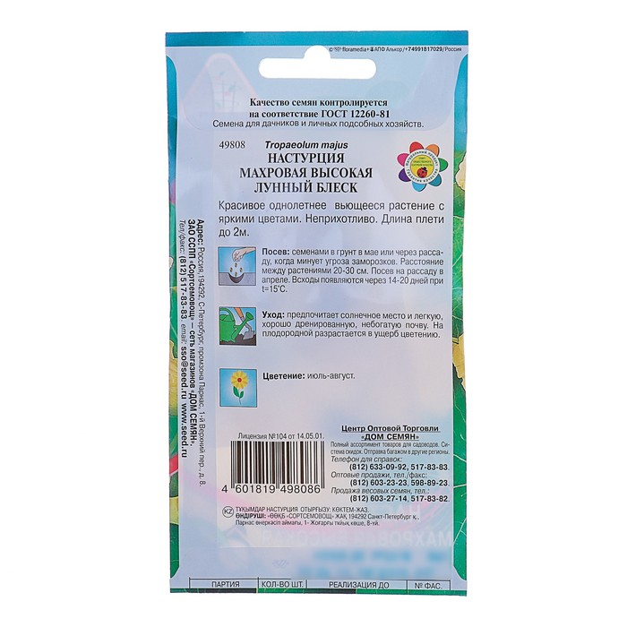 Семена цветов Настурция махровая высокая "Лунный Блеск" Дом семян, О, 9 шт — Характеристики