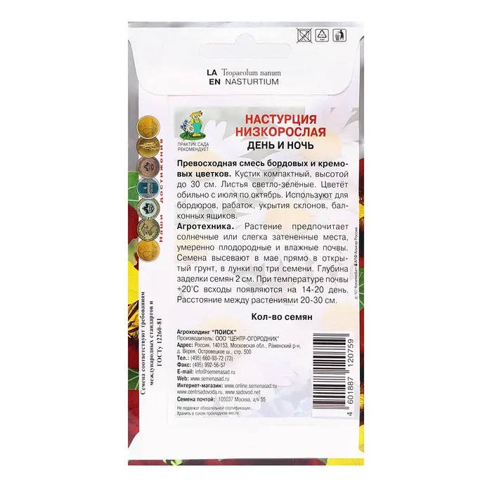 Семена цветов Настурция низкорослая "День и ночь", 1гр. — Характеристики