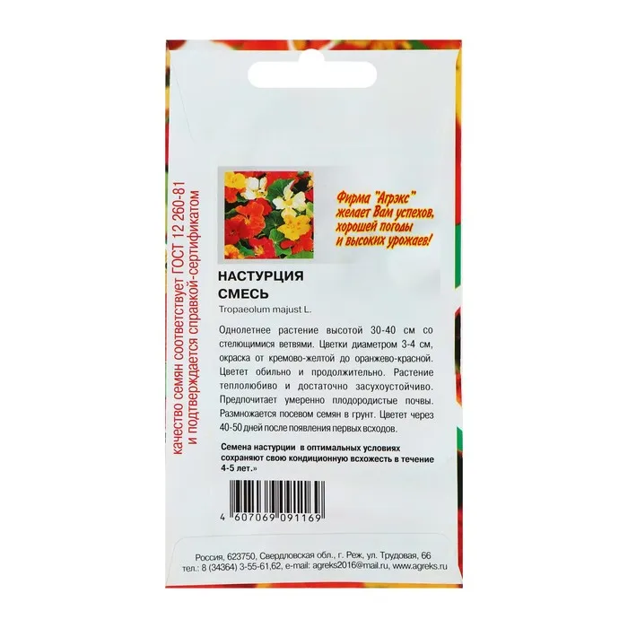 Однолетнее травянистое растение семейства Настурциевые высотой 30 см, образует кустик диаметром 30-40 см. Цветет обильно с июня до заморозков. Цветки полумахровые, разнообразной окраски, 5-6 см в диаметре. Теплолюбива и светолюбива. Предпочитает умеренно плодородные, влажные почвы. Выращивают рассадным способом или прямым посевом в открытый грунт. Для получения рассады семена высевают в апреле в горшки (по 2-3 в лунку). Всходы появляются через 10-14 дней. В открытый грунт растения высаживают, не нарушая земляной ком в конце мая-начале июня на расстоянии 30 см. Посев в открытый грунт проводят в мае предварительно намоченными в течение суток семенами по 3-4 шт. в лунку. Используется для посадки в бордюрах, на рабатках, а также в контейнеры и вазы.