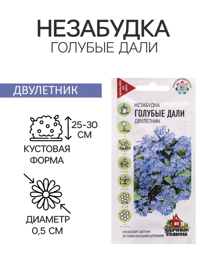 Семена цветов «Незабудка Голубые глазки», двулетник, 0,1 г — многолетнее красиво цветущее растение с многочисленными цветочками небесно-голубого цвета. Компактные кустики высотой 25 см дополнят любой пейзаж цветника.