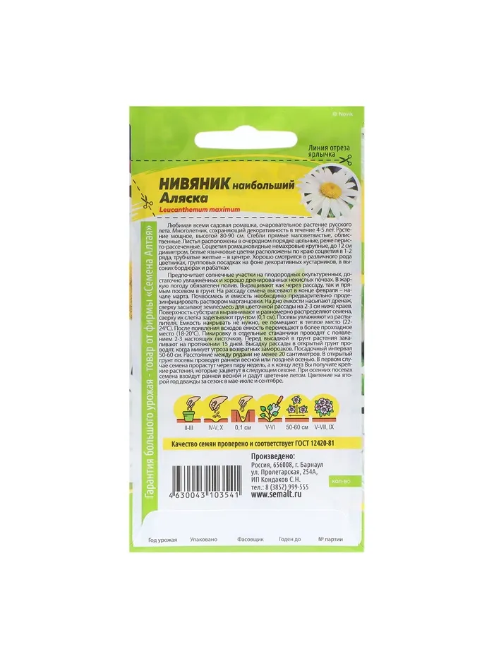 Любимая всеми садовая ромашка, очаровательное растение русского лета. Многолетник, сохраняющий декоративные качества в течение 4-5 лет. Растение высокое, мощное, высотой 80-90 см . Листья темно-зеленые стеблевые. Соцветия - корзинки крупные немахровые белые , диаметром 10 -12 см. Зацветает на второй год в июле, цветение длится до заморозков. Великолепна в одиночных и групповых посадках на газонах, рабатках и миксбордерах, в срезке долго сохраняет декоративность и свежесть. Предпочитает рыхлую, окультуренную на глубину 25-30 см плодородную почву и открытые солнечные места, выносит легкую полутень. В жаркую погоду обязателен полив.