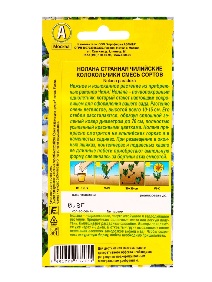 Семена цветов Нолана Чилийские колокольчики, смесь окрасок , Ц/П,0,3 г — Характеристики